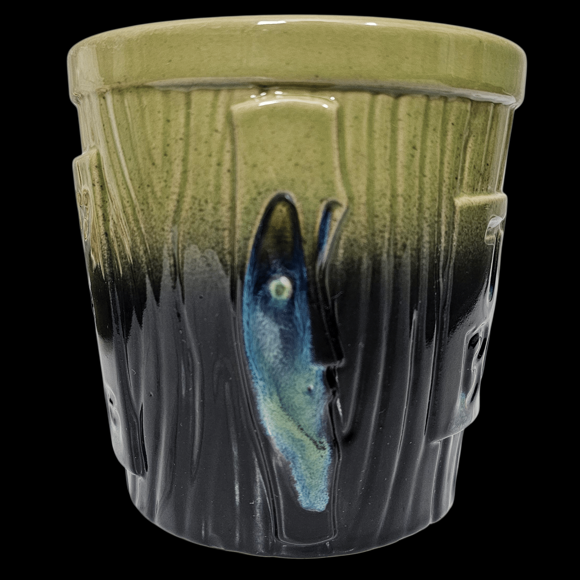 ** This mug is a 1/1 glaze test that has a gloss green to gloss black gradient. A third melty glaze was added in various spots. This mug will never be recreated making this a true 1 of 1. The interior color matches this gradient. **