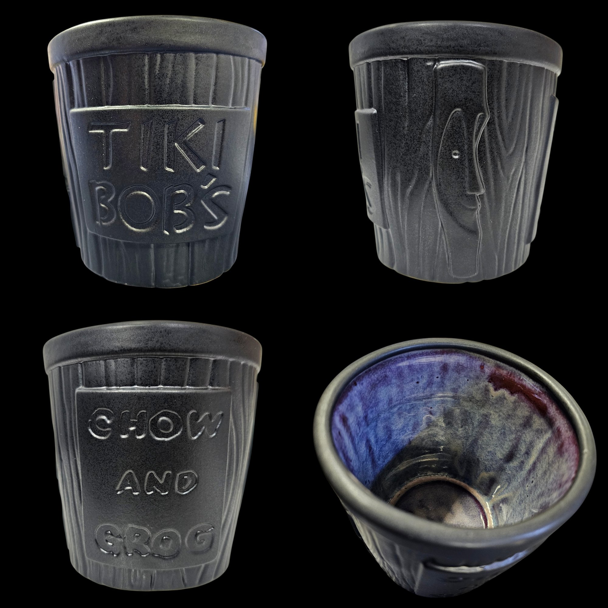The first mug in this series (Bucket No.1) is a tribute to the legendary Tiki Bob's in San Francisco, California. This mug is adorned with the classic Bob logo and font that were used on their marketing materials and advertisements.